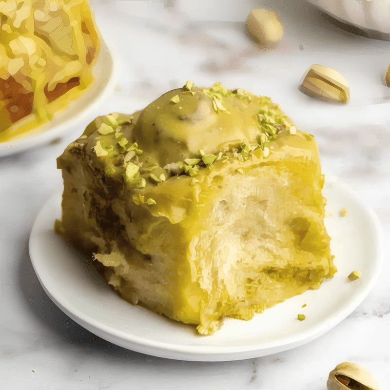 O toque gourmet: pistaches crocantes e um glacê suave.